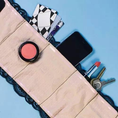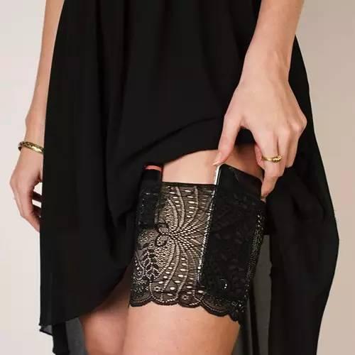 大腿圈就是一种隐藏在裙子里,裹在大腿上,就类似女士丝袜的蕾丝花边一样,防滑的,里面有好多小兜兜,可以把手机,银行卡,钥匙,口红,粉底,一应俱全~全塞进去~