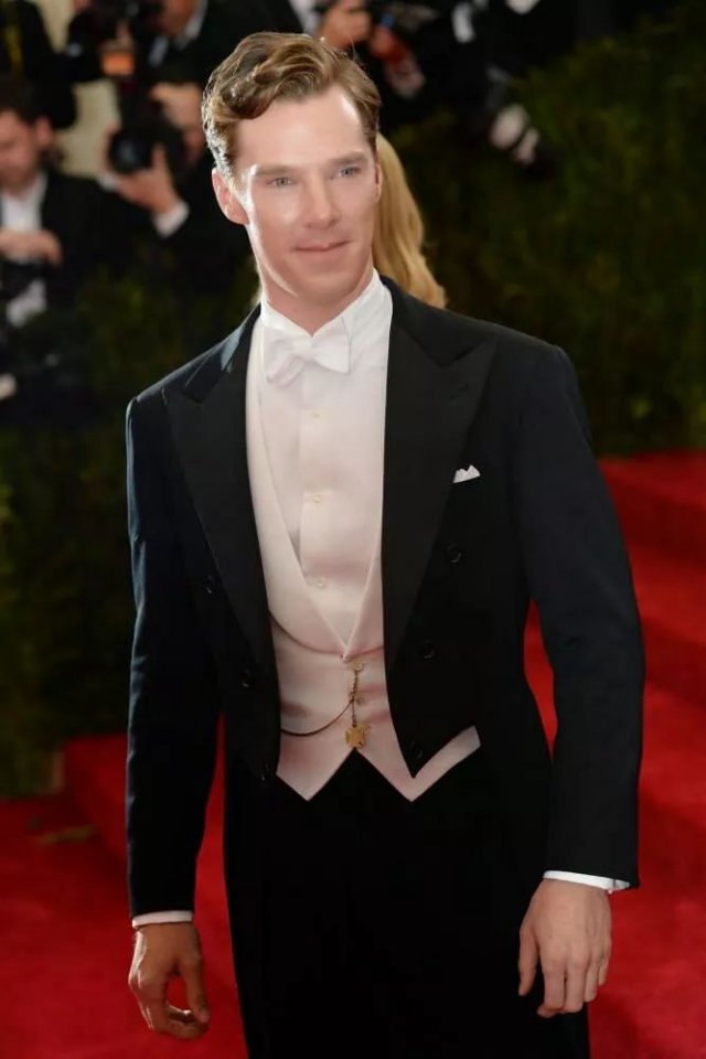 青果领出镜率较低,一般场合用不到。它通常搭配 White Tie 燕尾服,如果你需要走个红毯、参加个英国皇室国宴的话,就会需要青果领马甲。