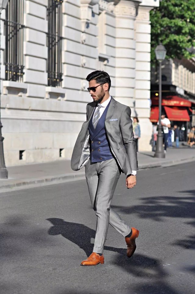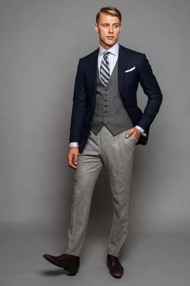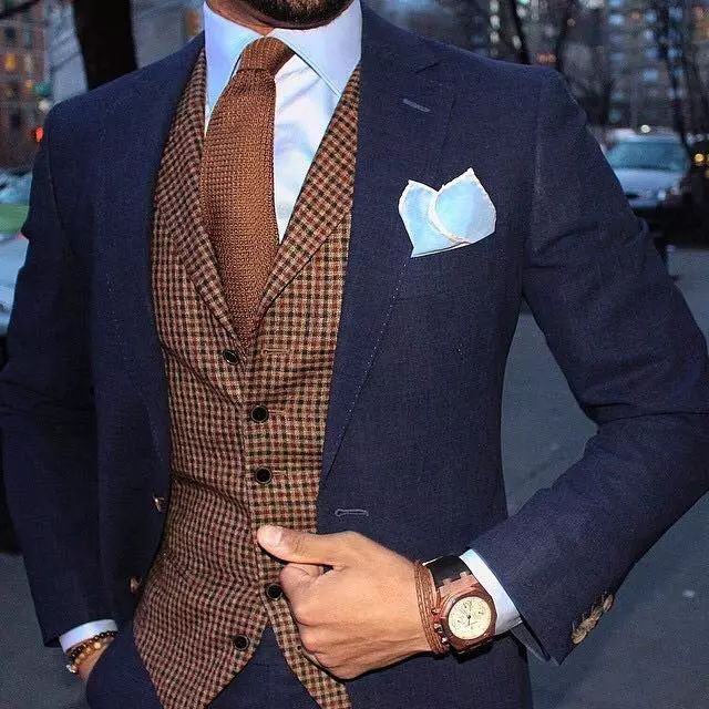 如果马甲选不好,就选择与西装同质同地的正装马甲凑成三件套。虽然说这样有点老套古板,但是肯定不会出错。总比彰显与众不同的品位瞎穿一通好。