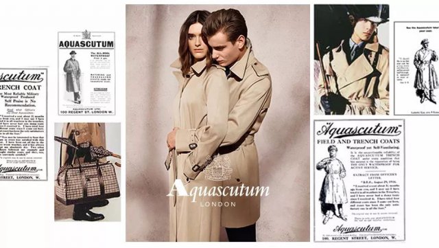 Aquascutum 也就是大家都熟悉的 雅格狮丹,跟 Burberry 和 Barbour 素有 " 风衣三杰 " 的称号。