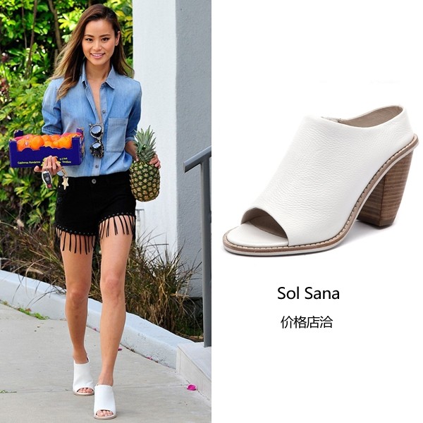 Jamie Chung外出休闲造型,流苏短裤已是亮点十足,白色穆勒鞋“画龙点睛”。