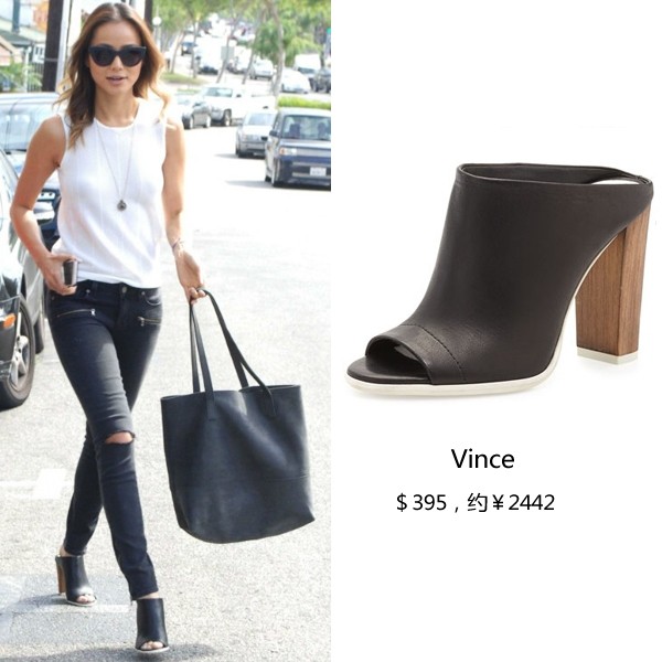 Jamie Chung一身黑白简约装扮亮相街头,黑色Vince穆勒鞋与牛仔裤融为一体,一秒变身大长腿。