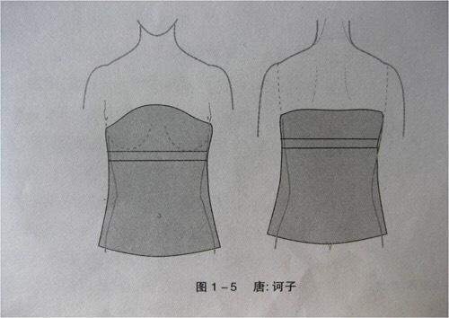 唐朝以前的内衣肩部都缀有带子,到了唐代,出现了一种无带的内衣,称为“诃子”。这也是其外衣的形制特点所决定的:唐代的女子喜穿“半露胸式裙装