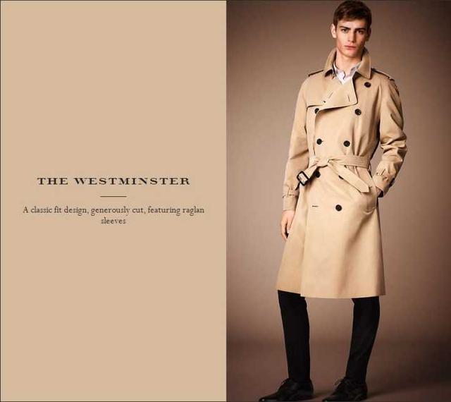 4. Westminster,名字是伦敦很著名的一个区域。超级肥大款。答主穿UK50都感觉衣服里面可以再塞下一个姑娘,而且这个款型只有长款,没有短和中长款。穿上以后有很复古的感觉,而且丝毫不用担心未来十年或者二十年身材走样,上身后脑中自然浮现披着大风衣潇洒晒气的发哥。真心不适合少年,胖子,大叔们考虑吧