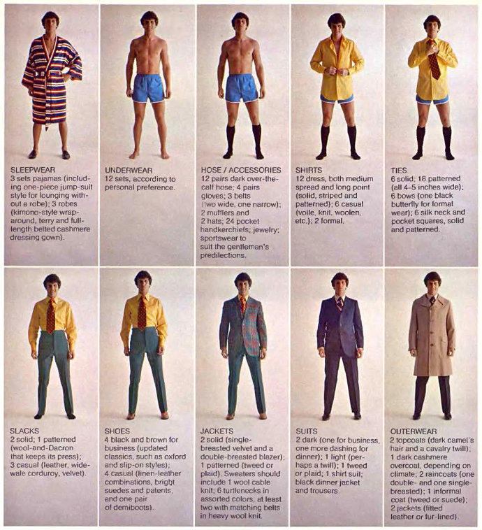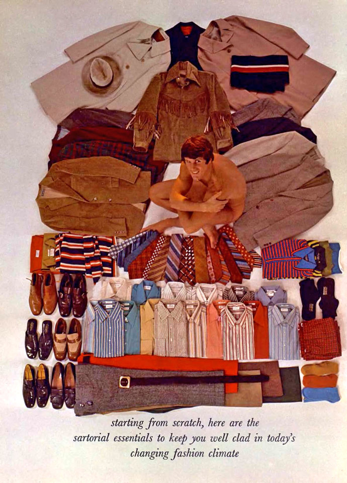 这组图片来自《Playboy》美国版1970年3月刊,专题的题目是“都市男人基本衣柜”(The Basic Urban Wardrobe)。由Robert L.Green撰文,Alexas Urba掌镜,介绍了“Playboy”风格的七十年代都市男的形象。
