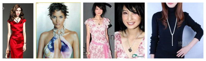 可以通过V领装、项链等饰品,将视觉中心转移至胸前。