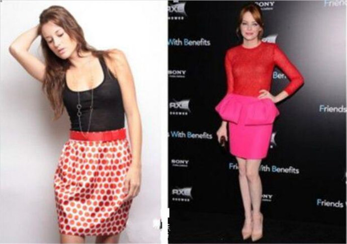 还可以穿有膨胀感的裙型,如蓬蓬裙、A型短裙、大图案的半身裙、超短的、上面有褶皱、大口袋等装饰的包臀裙,而不用担心臀部会显大。(但这些款式梨型身材则要避免)
