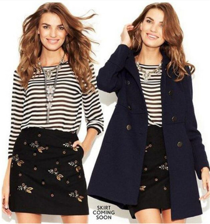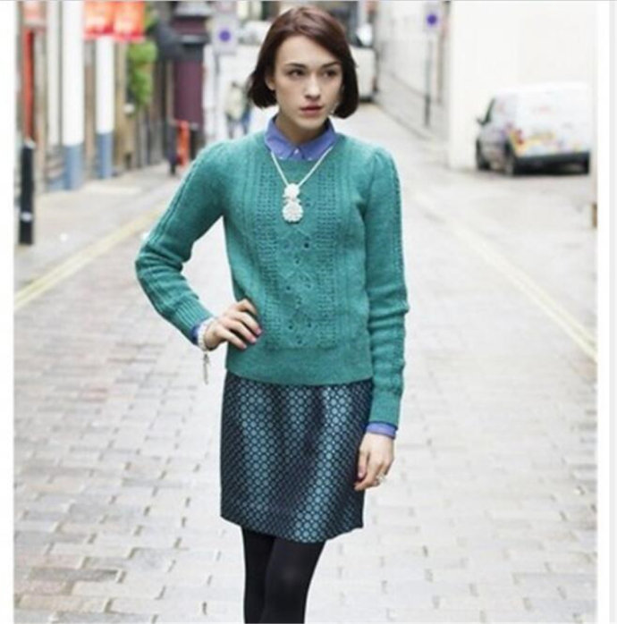 如果勒紧腰线,使腰变细,并穿A字形款式的下装,宽肩人的身形就会呈现X型。而X型的身形是很标准的体型。如下图中,如果这个办法能和上面所提到的利用 装饰物弱化肩部线条结合使用,效果会更好!