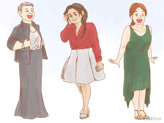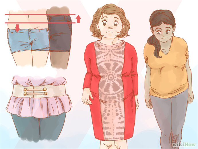 避免穿紧身衣或者连衣裙,它们也会吸引别人的注意力到你的腰部。