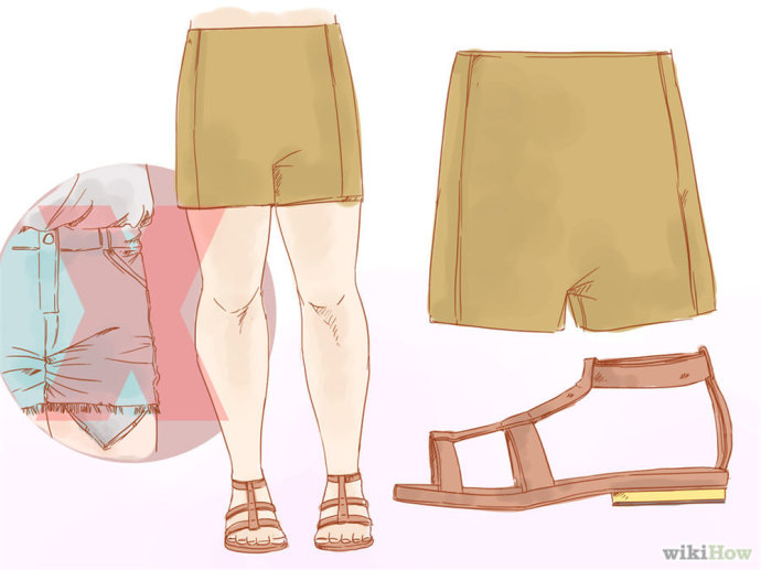 不要因为你丰满的体形而害怕穿短裤。短裤可以起到突出你的美腿、弱化腰部的作用。你甚至可以搭配一根看起来不是太笨重的、有弹性的腰带。你也可以搭配一双裸色的凉鞋,使腿部看起来更修长。