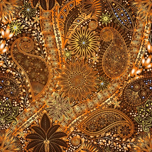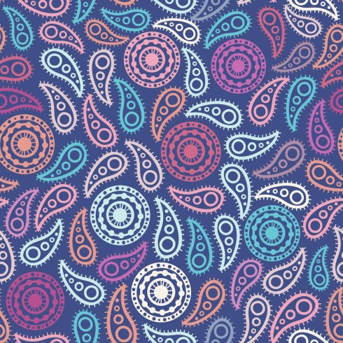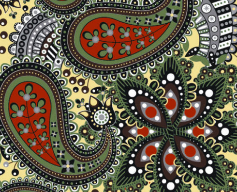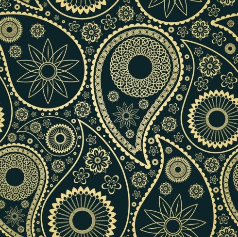 佩斯利纹样诞生于古巴比伦,兴盛于波斯和印度。 它的图案据说是来自于印度教里的“生命之树”——菩提树叶或海枣树叶。也有人从芒果、切开的无花果、松球、草履虫结构上找到它的影子。似乎天生就与“一千零一夜”这样的神话有着千丝万缕的关系。