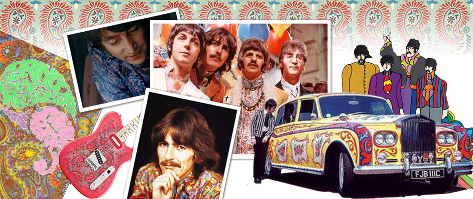 到了上个世纪60年代,随着嬉皮士运动的兴起,佩斯利花纹以复古感和印度血统受到青年们的青睐。流线型的繁复花纹似乎能和大麻相互作用,产生迷幻效果。The Beatles的印度朝圣之旅更将这股风潮推波助澜,使其与嬉皮士、波西米亚时尚变得密不可分。