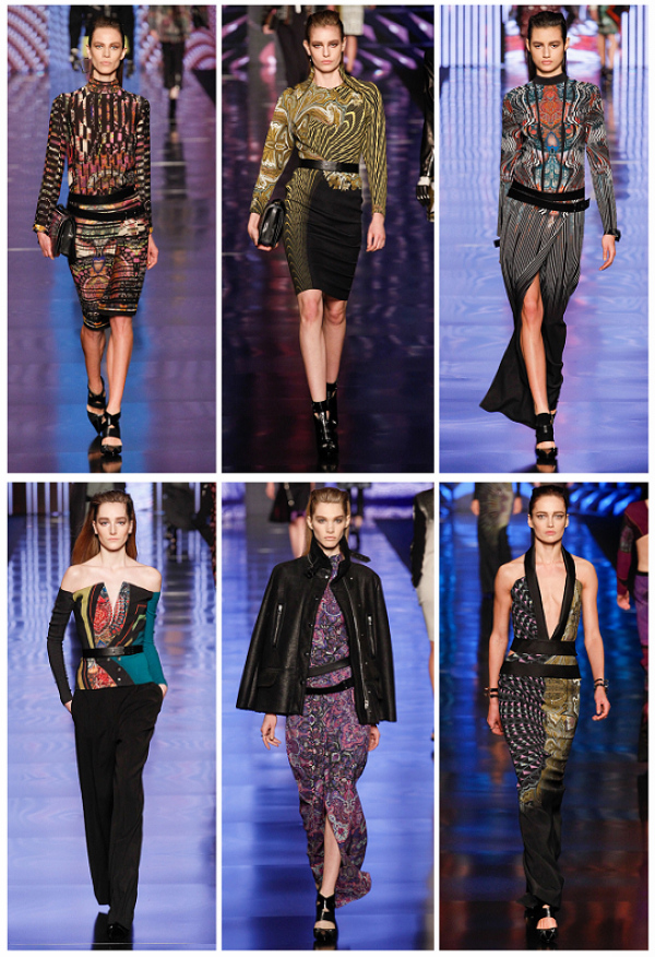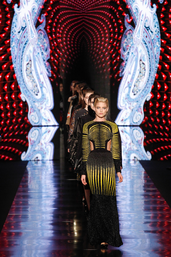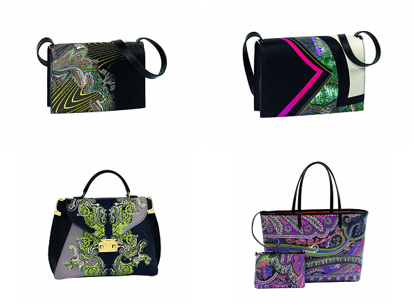 就春夏和秋冬两季的花纹而言:在春夏系列中,设计师Veronica Etro以亚洲风尚为灵感,Etro的佩斯利印花与整个动植物群结合,重新组合成为了新的佩斯里印花,并以浮世绘与水墨画风格的手绘方式展现,令灵魂式的腰果状佩斯利图案充满春意柔情的诗画情怀;当转换到凝重秋冬的设计里时,Veronica Etro又在系列中将复杂的印花与这季的几何流行完美融合,黑色几何图案下覆盖的佩斯利花纹被重新注解和演绎,分别融进了大教堂拱顶、文艺复兴风格的天花板、19世纪的民族风纺织,以及俄罗斯陶瓷等元素,时髦中带点民族气、现代中带点复古意、华丽中又融合了点朋克精神,好似秋冬季节的丰颖多彩,正与春夏的轻盈柔美形成对比。这种在经典中带着点冒险精神,优雅中由加入一点胆量的设计风格,也正是Etro所一直体现的品牌精神所在。