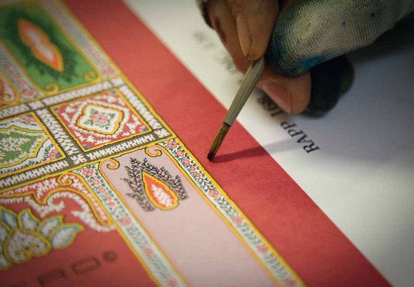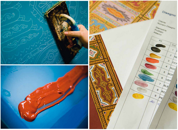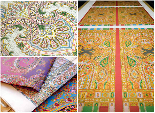 另一方面,在当今轻薄面料上各种印花成风潮,T台上纷纷流行起科技感的立体数码印花的时尚界,仍然保持着传统手工传承的ETRO式印花也更加显得难能可贵和复古清新意,这佩斯利花纹的复古的一面,或许可以从一条即将在9月亮相Etro品牌专卖店的一条佩斯利围巾的整个工艺过程中,更清晰的感知一下ETRO式的传统的独一无二。