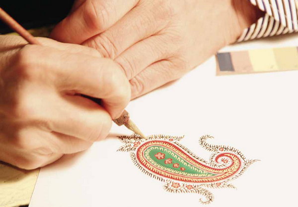 关于一件好作品所涉及到的“精湛的印染技术和稀有面料相结合的同时,融合了富有现代感的设计手法,从而体现出独特的美学创新理念。”这些关键步骤之中,Etro依然本持着传统手绘工艺的部分是其中最值得一提的,这种传统工艺可绘出独一无二的佩斯利印花图案,并展现出Etro原汁原味的面料触感和独特感觉,而这部分的佩斯利花纹的设计都来自手绘大师Serge Maury的手绘工艺和独特的佩斯利设计,也是Etro可以在一众时髦印花中保持独特性得以脱颖而出的又一关键所在。