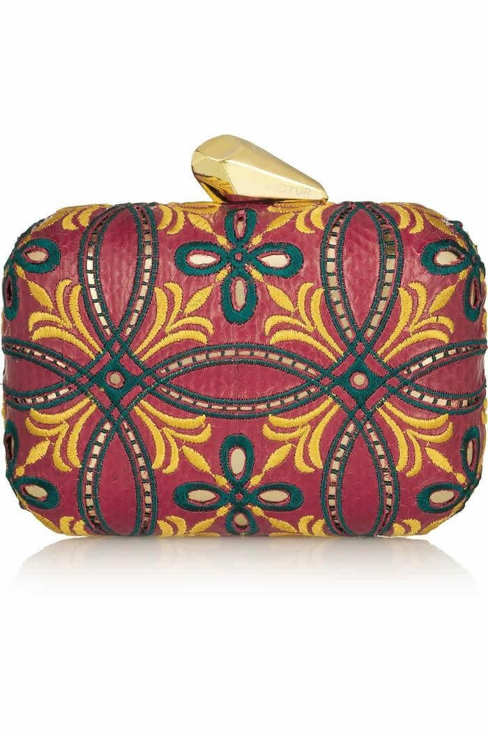 Morley 刺绣锦蛇皮两用盒形手拿包