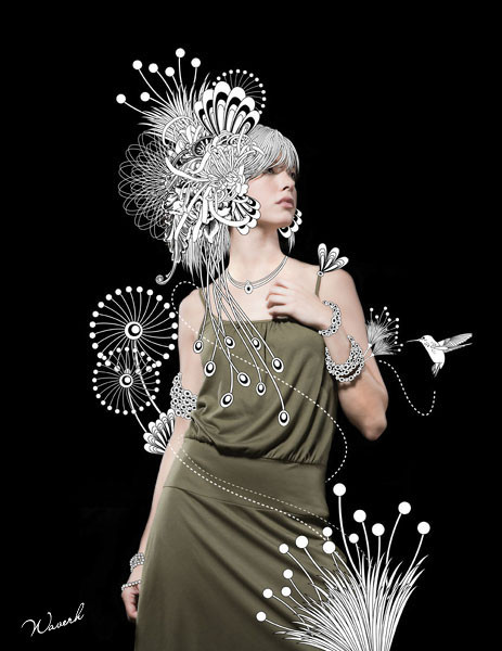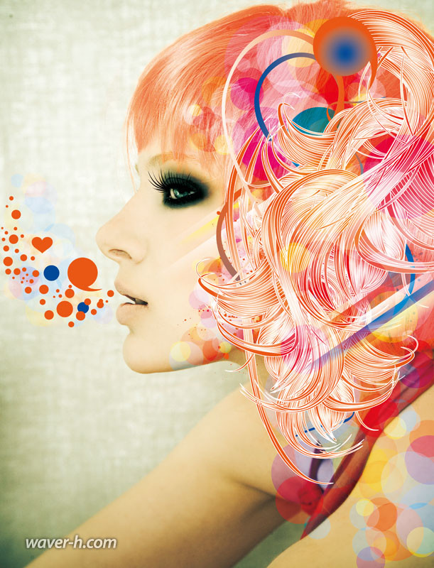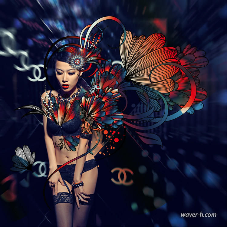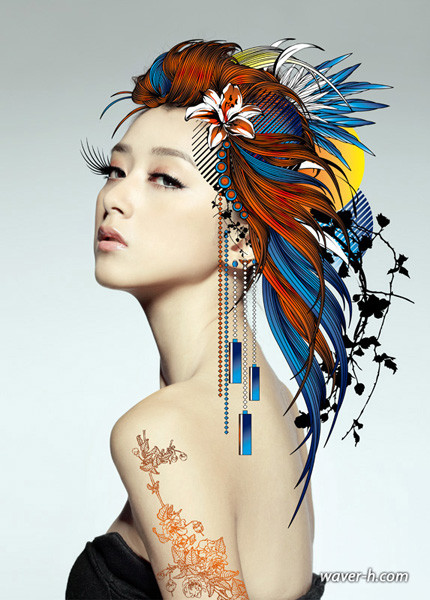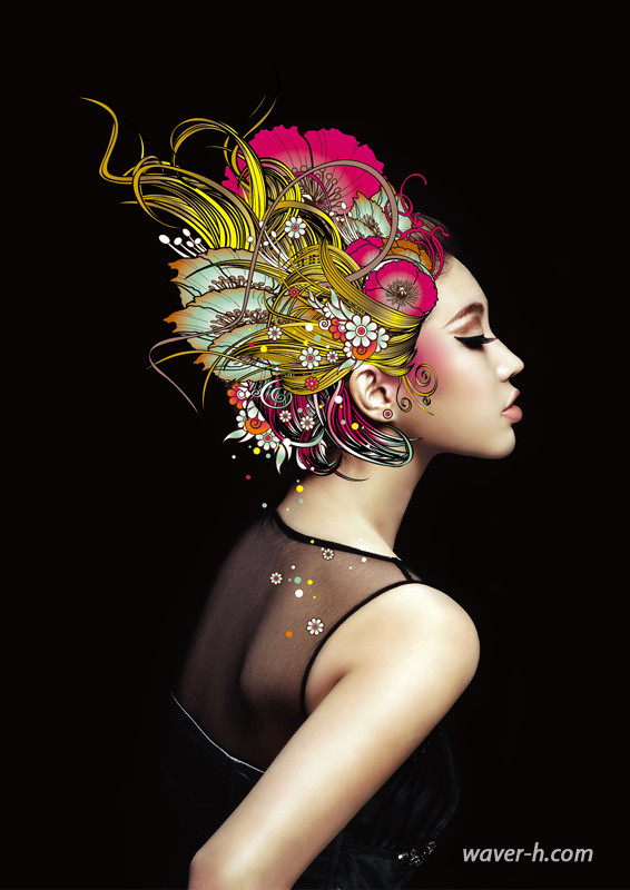 数位插画近来已自成一式新艺术,而 waver_h 的创作新诠释了插画华丽浪漫;复兴大量装饰下崇拜华丽的一种唯美,富有强烈现代感和丰富性。waver_h 所带来的创作大量结合像量、点阵与影像,运用复合媒材,并善于堆叠、重复创造华丽,也让他的作品具有独特的视觉冲击力。