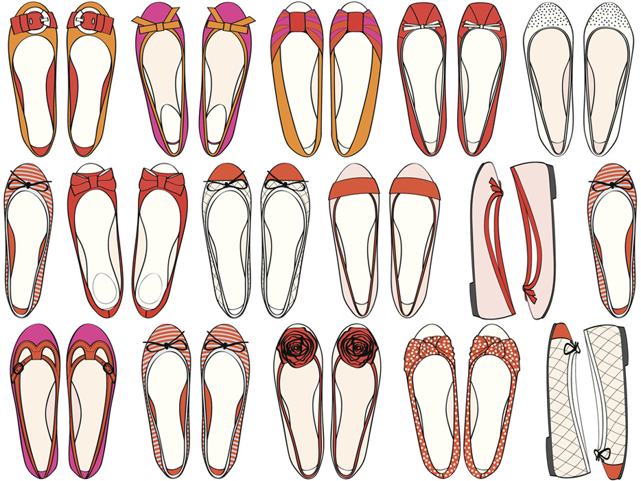 「芭蕾鞋」Ballet Flats 冠以「芭蕾」之名,的的确确和芭蕾有关,形似芭蕾演员们舞鞋,几乎没有后跟。舞蹈演员们踮起脚尖体现体态的轻盈,因此穿舞鞋的时候用两根绸带缠绕而加固紧贴性,因此芭蕾鞋也保留了这个标志,取而代之在鞋头点缀以蝴蝶结,精致可爱。