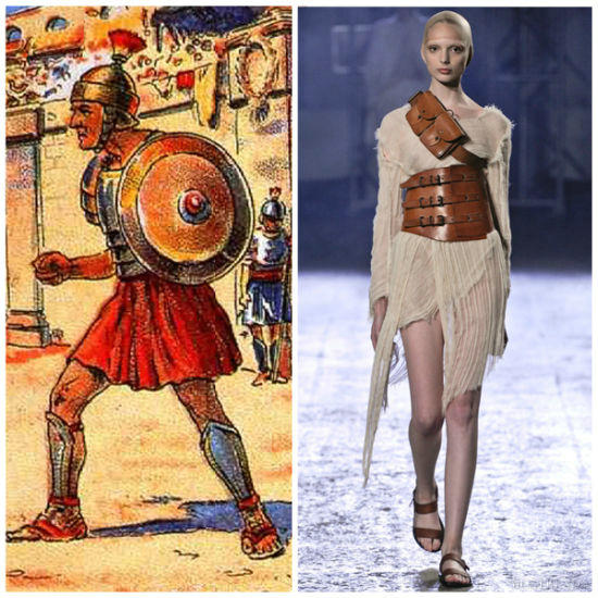 古罗马人在武力上征服了希腊,在文化方面却拜倒在希腊人的脚下,在服装上几乎没有创新。罗马时期服饰特点跟希腊服饰一脉相承。古代罗马的服装总体上和希腊的服装一样有同样的悬垂效果和设计,但发生了很多重要的变化。首先,常穿的服装是缝制而不是用别针连接的,而且两边都封闭。其次,用绣花布做成的装饰几乎没有了,服装大胆的造型也不复存在。他们的服装有“托嘎”(Toga)、“丘尼卡”(Tunica)、“斯托拉”(Stola)、“帕拉”(Palla)等。面料有轻柔的羊毛织物的亚麻布,后期还从东方引进了丝织物。