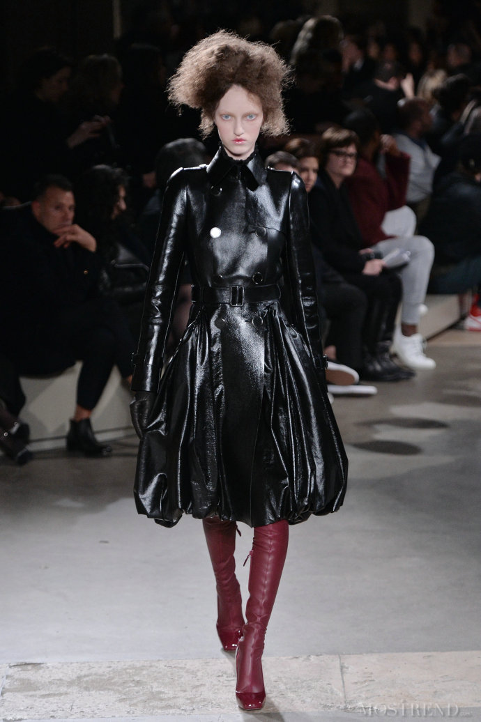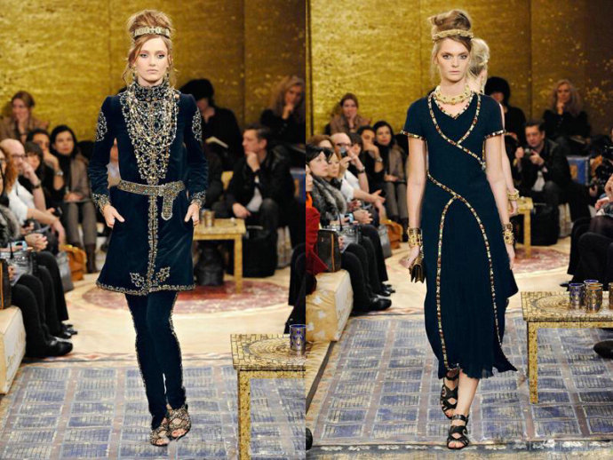 哥特式建筑,其耸立的尖角以及厚重的色彩极大的影响了服饰文化。受建筑风格的影响,哥特服装风格主要体现为高高的冠戴、尖头的鞋、衣襟下端呈尖形和锯齿等锐角的感觉。哥特主义爱的就是衣服层层叠叠、从胸衣到马甲、从外套到披风、全副武装、首饰叮叮当当、繁复,黑色的着装、或其它暗色、如深蓝、深红、深绿。总之,色彩要神秘阴沉,如果把近几季的巴黎秋冬时装浓缩成一个形象,那就是一个活脱脱的暗夜女神:惨白的皮肤、血腥的眼神,和着或白、或猩红、或暗黑、线条锐利、面料朴素、领口高耸的单色长袍,充满了维多利亚时代(流行大量的蕾丝花边、缎带、蝴蝶结和束腰设计、展现十足的女性特质,塑造出高贵典雅的形象)的禁欲、庄严、冷酷。