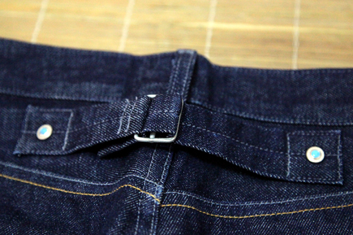 早期的裤子是没有松紧更没有皮带环的,是在牛仔裤上钉上可以挂住背带的扣子,靠背带固定住裤子不往下掉的。