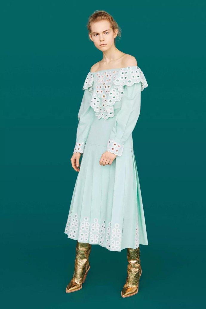 以甜美少女感的一字肩连衣裙