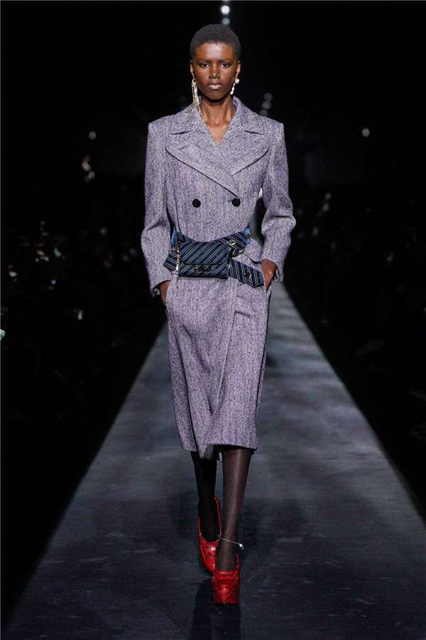 大秀一开场,就不难发现本季服装的肩部设计格外新颖独特,宛如山丘般的弧形轮廓设计充满力量感。无论是廓形大衣还是经典复古的西装套装,加固一条质感十足的腰带,灵巧地勾勒出柔美线条,彰显女性魅力。