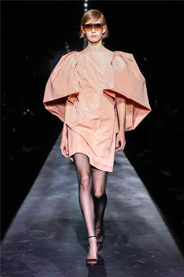 夸张立挺的肩部线条、东瀛风情的印花图案,再而结合着柔美的卷边装饰,呈现出女性所独具的诱惑力。假如你足够强大,那么你就可以直接将这些“诱惑”穿上身。