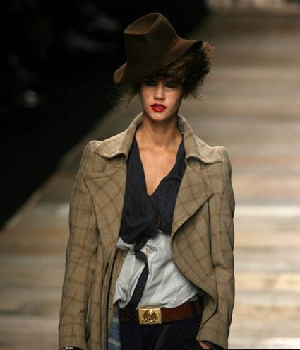 朋克风格为各大设计品牌所重构吸收始于VivianWesterwood。VivianWesterwood被称为“朋克之母”,她是20世纪后期国际上最重要的设计师之一,早在70年代就以叛逆的服装风格成名。这种服装就是早期朋克运动的服饰。许多人对VivianWesterwood对时装界的贡献总结为:将地下和街头时尚变成大众流行风潮。进入上世纪90年代以后,时装界出现了后朋克风潮,它的主要指标是鲜艳、破烂、简洁、金属、街头。反观今年的朋克潮,颜色方面却回归了以往的以沉色为主,款式基调依然是简洁,少了金属和街头的气息。