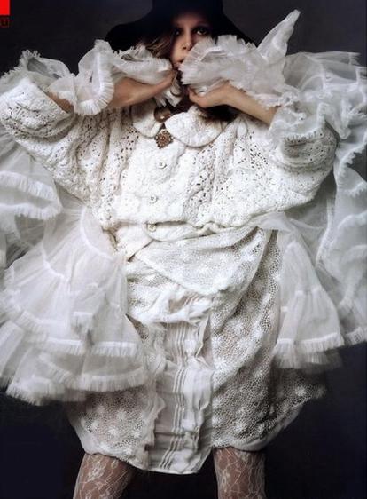 温婉的荷叶边今季再现,变化出新时代古典高贵的气质。与以往不同的是,今季的荷叶边摆脱了细碎的小家子气,在融入了英国皇家气质后,大大地舒展了开来,造型更加大气,轻柔飞扬地蔓延在整个肩部和胸部。另一方面,荷叶边也配合圆裙的裁剪,加以垂缀感的线条修饰,融维多利亚时代与爱德华时代于一体,更加具有贵族高雅的神韵。其中最著名的是维多利亚风格的蛋糕裙,本季无论是搭配休闲服饰的膝上蛋糕裙,还是出席酒会的长蛋糕裙,都十分受欢迎,能凸现维多利亚式的华丽典雅精神。