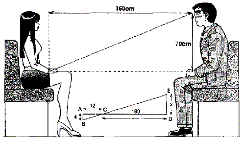 假设女孩双膝并隆的点和裙子上缘距离4CM,而裙摆到小裤裤之间的距离是12CM那么从侧面看来,