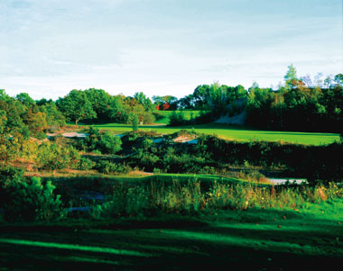 沙恐河静静地流过球场,这段河道超过了两英里。在得到州政府的允许之后,罗尼和一些专家们一起联手,重塑了这段河道的河床——在这之前,河道一直被“年代久远的沉淀物” 所堵塞。这些沉积物主要来自19世纪河畔的磨坊和伐木工人。拓宽河道后不久,球场遭遇了暴风雨的袭击,那也是罗尼在自己的任期内第一次感受到球场果岭不被水淹的快乐。这个重塑工程也为更多鱼类创建了栖息地,特别是之前不常见的棕红鲑鱼。在那些喜欢钓鱼的会员们看来,在早上和傍晚,这条冰冷的河道无异于钓鱼的最热地点。罗尼说,对环境很敏感的棕红鲑鱼(鱼类中的蓝知更鸟),只是环境改善带来的许多产物之一。