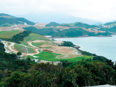 如今俱乐部的第3座18洞球场(东场,全长6640码)已对外开放,这是一座工程造价非常高的球场,整个项目花费近3亿港币,这不仅因为球场的原有地势是非常复杂的山地(施工时运走了19万立方米土方),更多的钱其实都花在了环保设施上了。