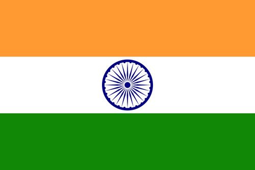 印度国旗:旗面由橙,白,绿三个相等的横长方形组成。旗面中心有一个含24根轴条的蓝色法轮。橙色象征了勇气,献身与无私,也是印度教士法衣的颜色,白色代表了真理与和平,而绿色则代表繁荣,信心与人类的生产力。法轮是印度孔雀王朝鼎盛的阿育王时代佛教圣地石柱柱头的狮首图案之一,神圣的法轮象征着真理与道德,也代表了印度古老的文明。法轮的24根轴条则可代表一天的24小时,象征国家时时都向前进。