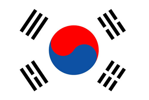 韩国国旗:韩国的国旗被称为太极旗,是以中国的儒教及道教的思想为基础而绘制的。白底代表神圣的国土;太极图象征宇宙天地浑成以及单一民族构成的国家。中间太极的圆代表人民;太极的两仪为上红下蓝,分别代表阳阴。四角的卦是:左上方为乾,右下为坤,右上为坎,左下为离, 分别代表天地水火,父母男女之意。