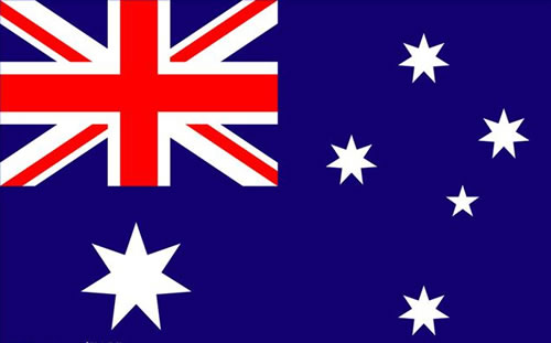 澳大利亚国旗:左上角为英国国旗,表明澳与英国的传统关系。“米”字旗下的大七角星象征组成澳联邦的六个洲和联邦区。其余部分有四颗较大的白色七角星与一颗较小的白色五角星,代表的是太平洋上空的南十字星座。蓝色象征着大海环抱着澳大利亚领土。