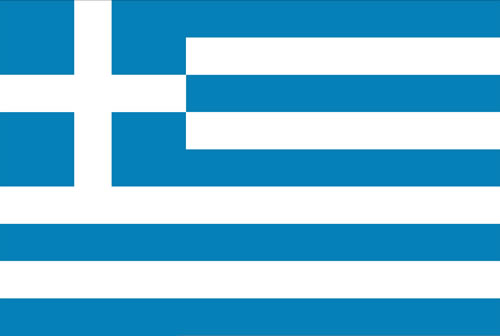 希腊国旗:旗面由四道白条和五道蓝条相间组成。左上方有一蓝色正方形,其中绘有白十字。九条宽带表示“不自由毋宁死”,这句格言希腊文共有九个音节。蓝色象征蓝天,白色象征对基督教的信仰。