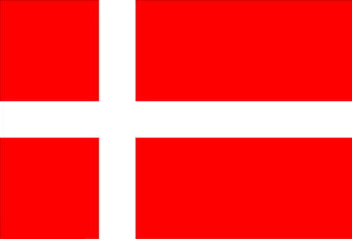 丹麦国旗:也叫作“丹尼布洛”(Dannebrog),图案为红地白十字。丹麦国旗历史久远,也对其他很多国家,特别是北欧国家的国旗设计起了重大影响。其他采取类似国旗设计的国家就包括了瑞典、挪威、芬兰和冰岛。根据丹麦的史诗记载,这面旗帜并不是由人设计,而是从天而降的。在1219年丹麦与爱沙尼亚的战争中,处于劣势的丹麦军队看见这面旗帜从天神的指缝中飘扬而下,一个丹麦士兵将其高高举起,丹麦军队便反败为胜。从此这面旗帜就成为丹麦民族的象征。十字图案也表示人们对上帝的信仰。
