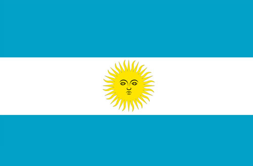 阿根廷国旗:天蓝色象征正义,白色象征信念,纯洁,正直和高尚。白色中间是“五月的太阳”,象征自由和未来。