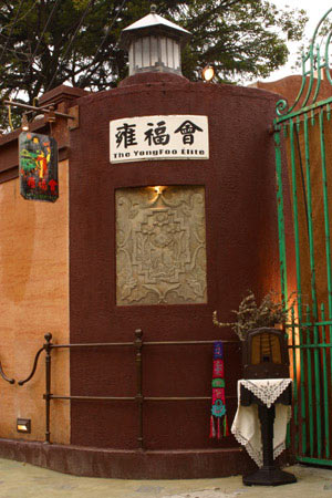 这栋西班牙风格的建筑,以前是英国领事馆,深藏在这小小的永福路上。成为雍福会之后,这里依旧神秘着。无论什么时候过去,门口总有三四个穿着深色西服、拿着对讲机的男人,有一点国宾馆的味道。车停过去,就有西服男人过来拉开门,并顺手接过车钥匙去泊车了。