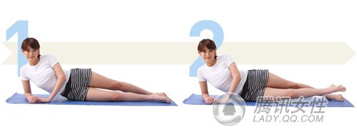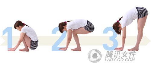 在做这组练习时,需注意保持手掌和地板之间,两个膝盖之间不分开。