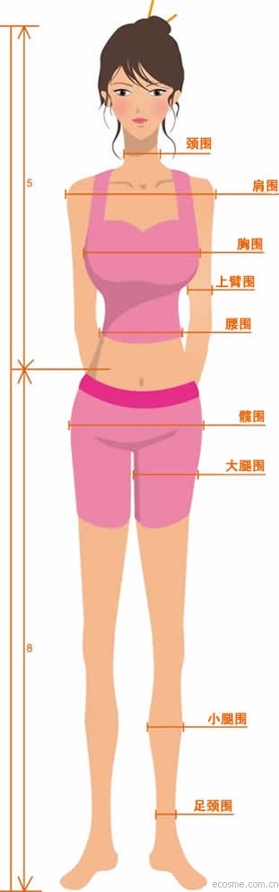 | 以肚脐为界,上下身比例应为5:8,符合“黄金分割”定律。 | |