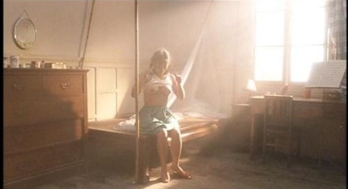 而我个人认为她拍这片的时候露得这么多,我一点也不意外,因为她在拍这片之前的1991年曾经拍过一部电视剧《太阳鸽》,这片中她就没戴胸罩,全片就只穿一件白色的连衣裙,两点全透,虽然当时她才13岁,不过女孩子发育得早,所以两点毕现。所以《红樱桃》里她也是几乎全部透点,这和她不戴胸罩有直接关系。这绝对是生活习惯而非剧情需要!