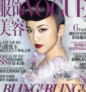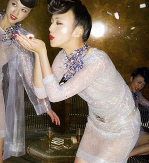 拍摄杂志封面照的汤唯,高盘刘海,浓黑眼线,夸张的睫毛,烈焰红唇,如果这个妆扮跻身PARTY,那真倒雷倒不少人。