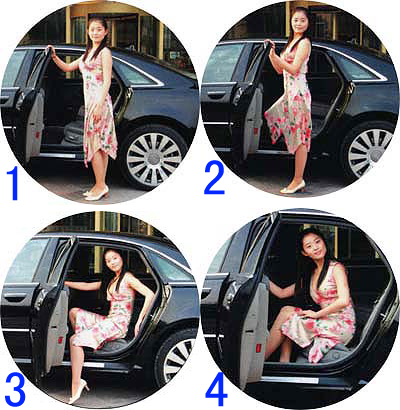 第四步借由双手撑住身体,移动身体至最舒服的位置坐妥,优雅地坐进车内。