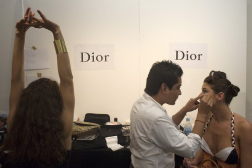 如果还没轮到化妆,那么尚可以偷闲伸个懒腰。