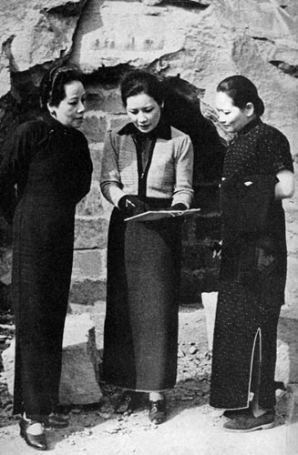 妹妹美龄站在姐姐庆龄身后
