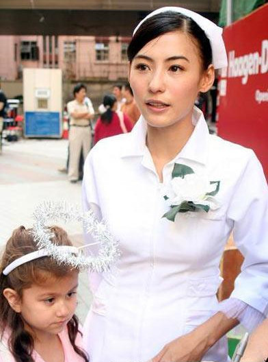几年前柏芝拍《最爱女人购物狂》时,在剧情里面扮演了一位护士,看她穿上护士服,还真的满像一位白衣天使的,尤其是她瘦弱的样子,感觉医院里的护士大多都是这种瘦瘦的,从形体上还是挺符合的,不过咱们柏芝太漂亮了,医院里哪有这么漂亮的护士呀?