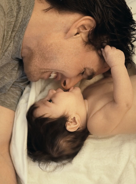 爸爸虽然是个银幕硬汉,可在宝宝旁边慈祥多了