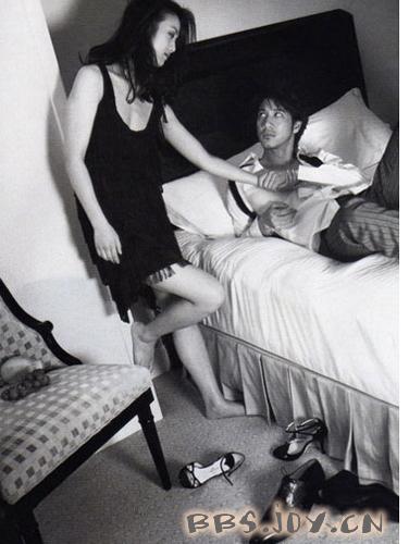 两人合拍的这张照片,看似妖艳,但又显无奈。胡兵和女模特的眼神透露的是忧伤。难到这就是传说中想爱都难,放手可惜,一场没有结果的爱情。